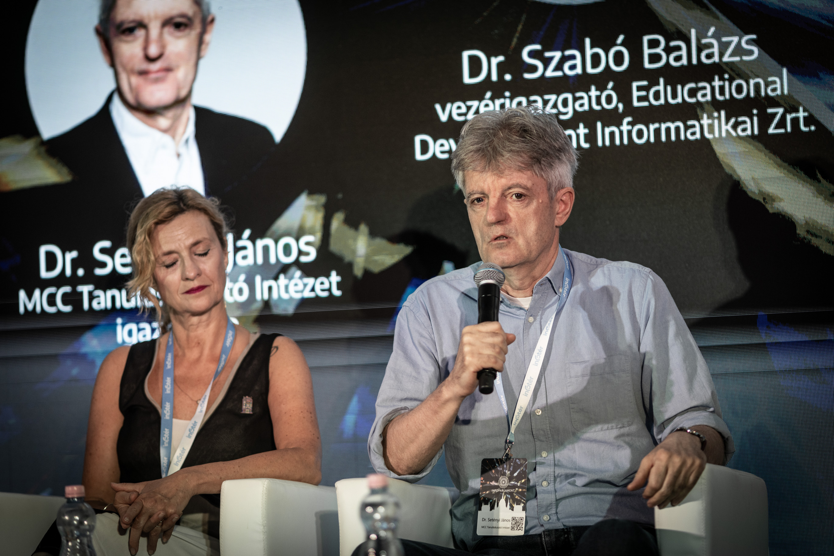 Dr. Szabó Balázs, Educational Development Informatikai Zrt. vezérigazgatója szerint a mesterséges intelligencia használata az oktatásban csak egy hype. Jelenleg nincsenek még olyan kiforrott megoldások, amelyeket meg is lehetne valósítani. A tanár próbálhat beépíteni az oktatásba MI-n alapuló feladatokat, de kérdés az is, hogy a szülők otthon mennyire vannak tisztában ezek a használatával, hiszen pl az anyaggyűjtések egy ház feladathoz készülhetnek ezzel a technikával, de maga a beadandó már nem. Fontos, hogy a szülő is képes legyen a kettő között különbséget tenni és rájönni mikor, melyikről van szó.